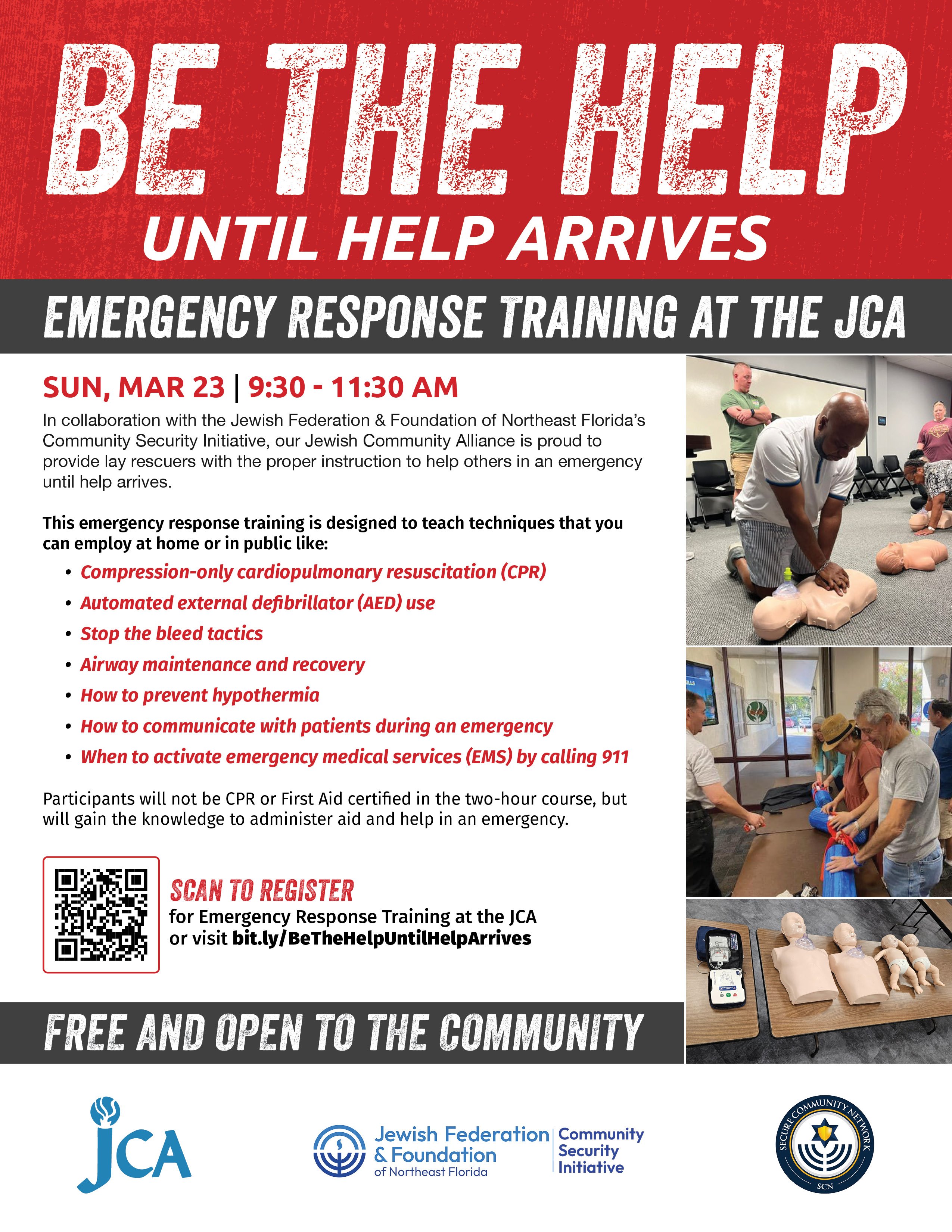 Register now at bit.ly/BeTheHelpUntilHelpArrives or scan the QR code on the flyer above.