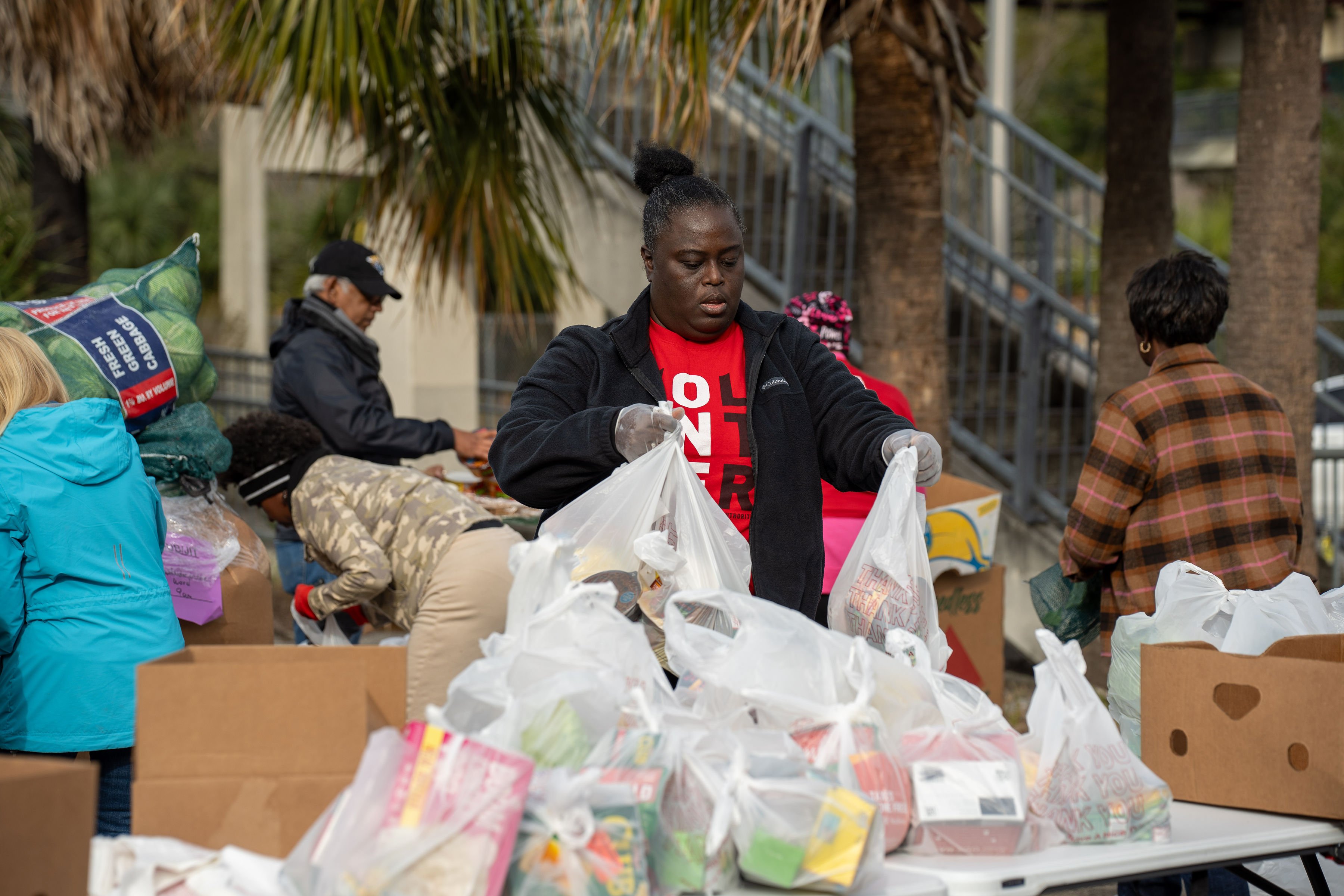 Volunteers are needed to help unload, sort, and hand food to resident families in need.